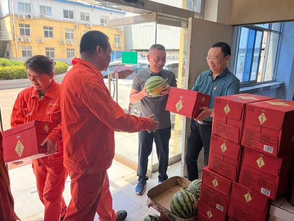 “天氣這么熱,大家辛苦了。要千萬注意安全,合理安排工作時(shí)間,盡量避開高溫作業(yè),感覺身體不適,立即休息調(diào)整,不能為了趕進(jìn)度打疲勞戰(zhàn),要在確保安全的前提下工作!”6月13日,洛陽地表溫度上升到41度,現(xiàn)場(chǎng)的員工像在“烤箱”中工作,公司經(jīng)理和工會(huì)主席冒著酷暑,深入石化設(shè)備制造檢測(cè)中心車間等現(xiàn)場(chǎng),親切看望慰問一線員工,為奮戰(zhàn)在炎熱天氣下的一線員工送去西瓜、清涼飲料等防暑降溫用品,及時(shí)把公司關(guān)懷送到每位員工手中。并圍繞如何做好防暑降溫工作提出了具體要求。