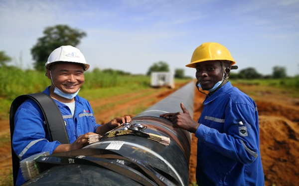 第一張照片是檢測分公司尼貝管道項目的中方員工和在尼日爾當地招聘的屬地化用工阿卜杜雷的合照。當時,兩個人正在進行爬行器檢測前的準備工作,另一名中方員工看到他們倆干活認真仔細,不畏艱苦,心情都很樂觀,就幫他們留了個影。照片中的兩人笑的是發自內心的甜,在異國他鄉,中外員工共同奏響了和諧相處的美妙樂章。尼貝管道項目是檢測分公司第一次以業主一級承包商的身份在國外獨立承接的長輸管線工程。尼日爾當地時間2023年05月13日14時20分,在47攝氏度高溫的西非沙漠腹地,隨著管道爬行器的最后一聲曝光鳴響,尼貝管道項目三標段線路工程最后一道焊口檢測完成,標志著檢測分公司承擔的852公里線路工程主體檢測告捷!檢測分公司第一次在尼日爾承接工程,就創造了一個又一個第一,把不可能變成了可能。