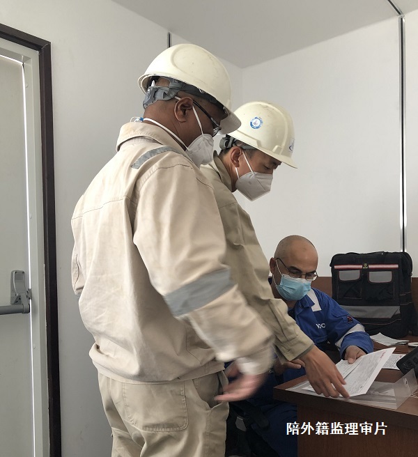 7點10分,到達項目業主美孚公司的辦公室,用英語和值班人員溝通當日作業時間、地點和各項安全風險防護措施。在得知一切都準備妥當后,簽票人員在當日作業票上簽字,用“Good”一詞表示了認可。8點,CPECC項目部質量部門的國際雇員、以及美孚的外籍監理審核射線底片和簽報告的時間到了,杜寧又準時出現在了站內CPECC辦公室,在桌子上支上觀片燈、將頭一天晚上的射線底片和報告分別擺好。審片過程中,還不時和監理就焊接質量進行交流。美孚人員對底片質量非常的認可,連夸“Good”并豎起了大拇指。
