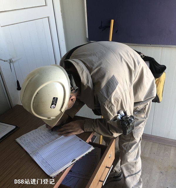 早上6點,已經吃完早飯,清點完護照、通行許可和要帶到現場的辦理作業票的資料后,杜寧準時出現在營地的班車點。6點10分,從營地前往工作地點DS8站的班車準時發車。6點40分,班車到達DS8站大門口。下車后,用阿語和門衛的當地值班人員簡單問候,并進行入門登記后,杜寧進入DS8站內。清晨的站內還稍顯安靜和空曠,但是已經升起的太陽總能喚醒一天工作的好心情。