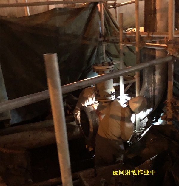 19點,檢查完底片、射線機、警戒用品、夜間通行許可、作業資格證、作業票等物品和資料后,杜寧和同事又出發前往DS8站進行夜間射線作業了。到氣體檢測室接受當地人員氣體測量、到中控室留下輻射報警儀和對講機以便出現緊急情況時溝通,再到作業全過程,一切都井然有序,完成地一絲不茍。結束工作回到營地已是深夜,等待他們的還有洗片和評片工作。